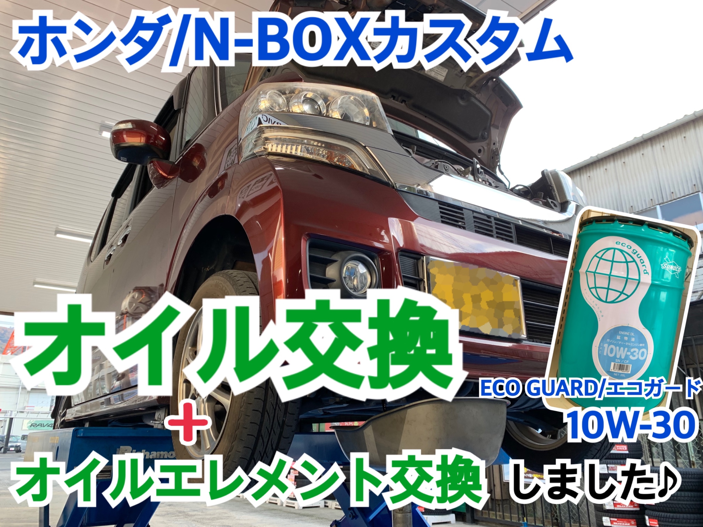 ホンダ N Boxカスタム オイル交換しました Ecoguard エコガード 10w 30 ホンダ N Boxカスタム メンテナンス商品 オイル関連 エンジンオイル交換 サービス事例 タイヤ館 矢野 タイヤからはじまる トータルカーメンテナンス タイヤ館グループ